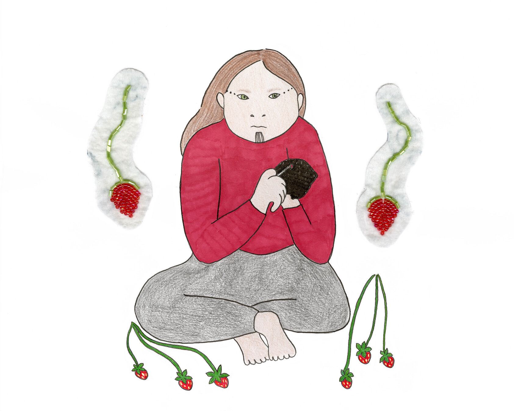 Ken'niiohontésha - 2021 pencil crayon, marker, glass seed beads